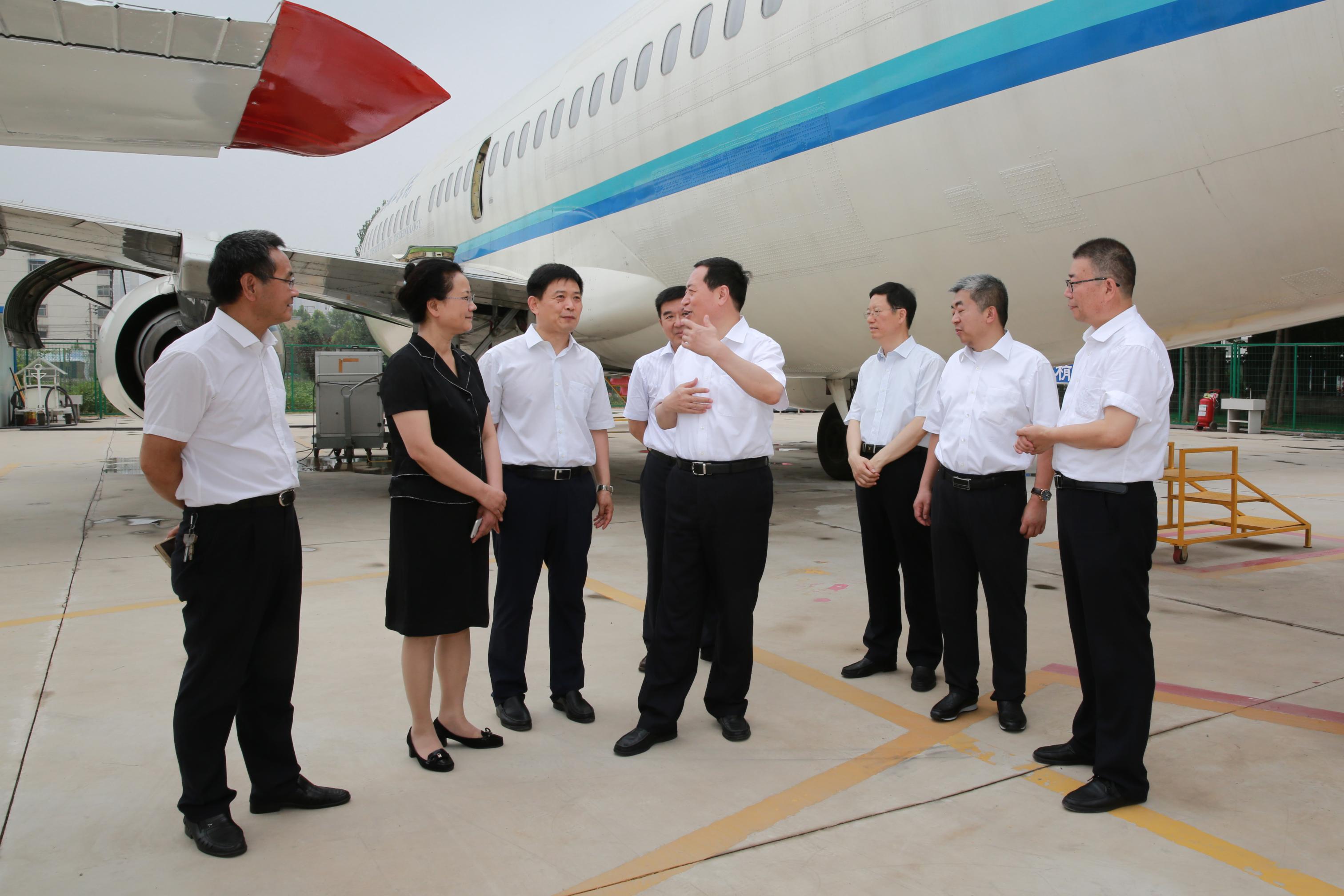 孙守刚一行听取了任中普和景国勋关于学校在人才培养、科学研究以及学科建设等方面的基本情况汇报,参观了我校近年来对台工作成就展,并考察了我校飞行学院的飞行机务实训基地,兴致勃勃地登上B737-300实训飞机。孙守刚部长对我校近几年来加强与台湾学校合作取得的成绩表示赞赏,尤其是学校抢抓机遇对接地方区域经济社会需求,加快转型发展,打造以航空为办学特色的努力和取得的成绩给予充分肯定,希望我校认真学习贯彻好党的十九大精神,落实好省委十届六次会议要求,围绕国家、河南以及行业及地方发展需求,肩负重任,扎实工作,不忘立德树人之初心,牢记人才培养之使命,立足河南,服务社会,凝练特色,积极作为,为河南“三区一群”国家战略实施和高等教育事业发展作出更大贡献。