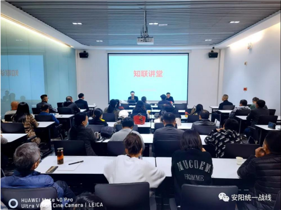 10月29日,我校计算机科学与信息工程学院副院长、安阳工学院知联会副会长、市知联会会员侯贵法应邀走进安阳市“知联讲堂”,为文峰区新的社会阶层人士作了一场题为《从数据到大数据》的报告。市委在线一区二区副部长李春喜,安阳工学院在线一区二区部长姚玉钦、副部长郑江华,文峰区委在线一区二区、区新联会部分会员代表近50人参加了活动。